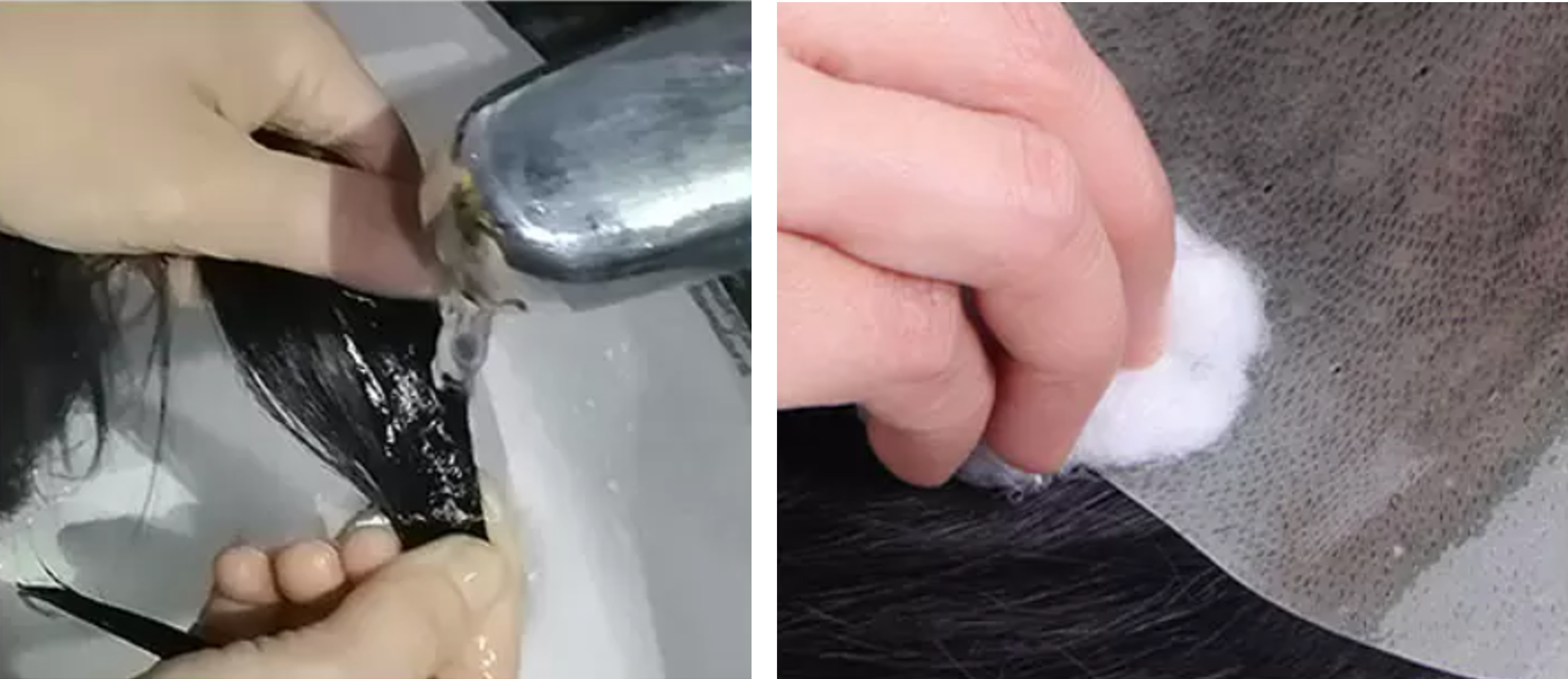 Conversely, lace hair systems require more work since the base permeable. We recommend soaking the lace hair system in water first. Carefully pull away the tape from the base of the lace hair system. Soak the hair system in liquid solvent for about 30 minutes. Remove any remaining residue, rinse and allow to dry.