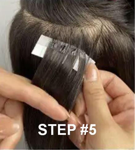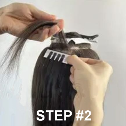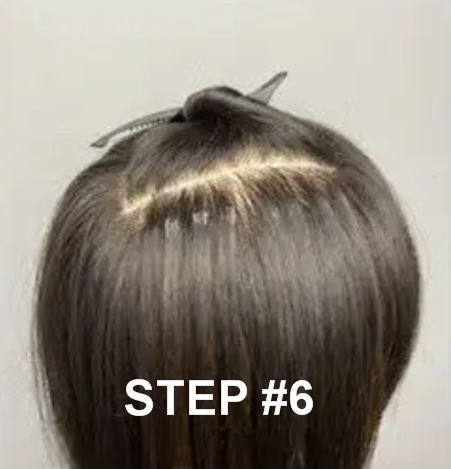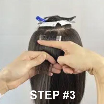 Step #2 – Position the sectioned hair over the glued tabs.
