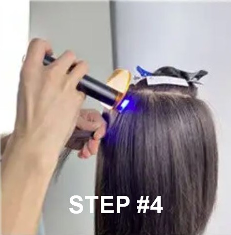 Step 4 – Expose the sectioned hair on the tabs to UV light.